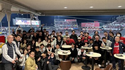 球場の熱気の中、会社のメンバーや取引先の皆さまと、普段の仕事とはまた違った形で
